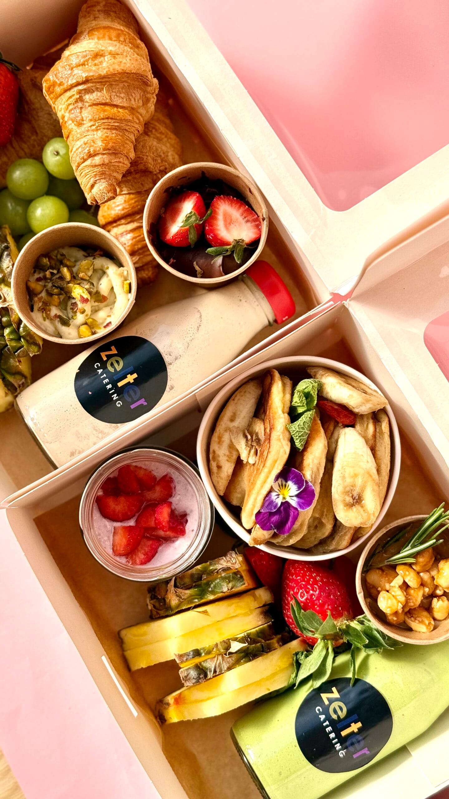 Box przeznaczony dla jednej osoby z różnorodnymi przekąskami wytrawnymi oraz słodkimi.
