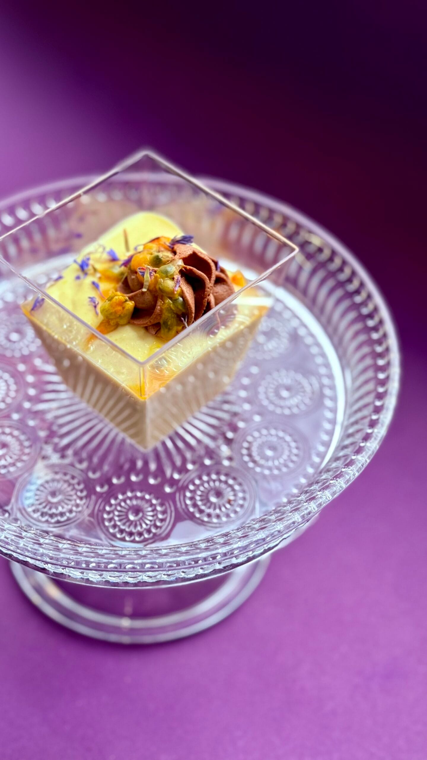 • deser mus mango-marakuja , krem angielski ,owoce sezonowe 8 szt