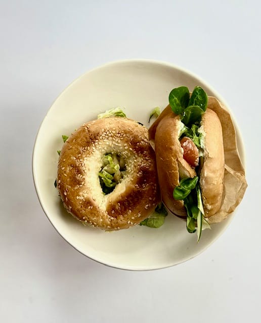 - bajgiel: pasta jajeczna, pomidorki koktajlowe, sałata, szczypior 6 szt